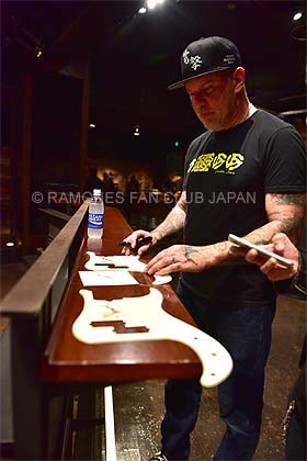 書き忘れたけど、ファン・クラブは毎日、終演後にミート&グリートをやらせてもらいました。事前に参加者を募集し、終演後に楽屋でCJやメンバーと会ってサインをもらって記念撮影。ラモーンズの時もやっていたけど、22年経っても内容・方法もまったく同じというアナログな( ? )ミーグリ(笑)。それでもラモーンズ・ファン・クラブの会員とはこの企画で一度もトラブルはない。これは自慢できることじゃないって思う。運営している側と集まる会員の連帯感が取れているというか。それにスマッシュの小川さんが許可を出してくれているから出来ている。ここすごく大事。プロモーターさんがNOと言ったら出来ないもの。