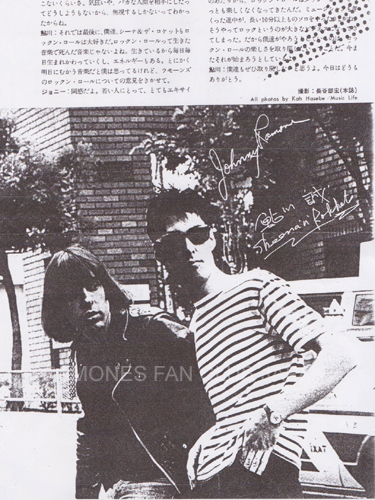 渋谷の東武ホテルが1980年の初来日でメンバーが泊まったホテルだ。このホテルは1975年にできたらしい。来日取材を行った当時の雑誌『MUSIC LIFE』で鮎川誠さんと対談をしジョニーはガードレールに座っていると思われるけど、バックのレンガの壁は、あのころ普通にあった風景。雨の降りしきる渋谷の街のどこなのか探せなかった。デジタルの時計も東武ホテルの壁にはなかった。
