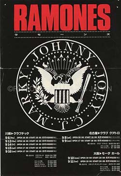 スタンディング・ショウの時代が到来し、ラモーンズは東京の会場を川崎クラブ・チッタをメインに日本ツアーを組んだ。90分弱のほぼノンストップ・ショウはSE『続・夕陽のガンマン』 が流れる前からHEY HO LET’S GOコールが始まり、1曲目の『DURANGO95』から熱気に包まれステージ・ダイブがスタートするというチッタのスタンディング・ライブの中でも1、2を争う盛り上がりだった。