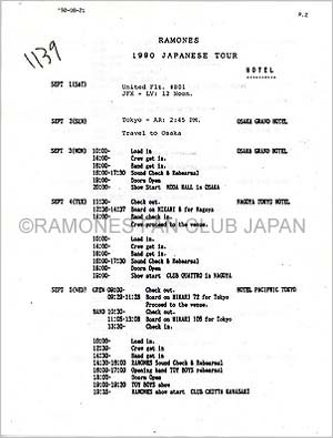 ラモーンズの中心的ソング・ライターでオリジナル・ベーシストのDEE DEE RAMONEが1989年に脱退。バンドはオーディションを行い、新人ベーシストCJ RAMONEを迎えラモーンズ3度目の来日を行う。1988年からJOHNNY RAMONEとの文通がスタートし、日本の状況を伝えることが任務になっていた私は、会場やキャパシティ、レコードの売り上げ、掲載された記事についてを克明に伝えた。1990年の日本公演は、おそらくこうしたデータを元に当時の他のバンドの来日公演と比べても少し長めツアーが組まれたと思う。東京公演は最初に5回公演が予定されたが、チケットが売り切れたことを伝えた数日後には追加公演が決まった。(追加公演がどの日だったのかは記憶が曖昧です)
