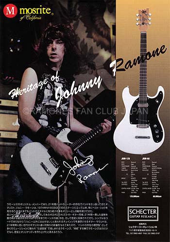 JOHNNY RAMONEのギターにどこの企業も興味を持っていなかった(?)時代に、遂にリリースされたJOHNNY RAMONE MODELのフライヤー。