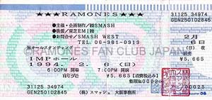 93年に続き冬の来日。1、2月に海外組の来日が多いのは、毎年1月に行なわれているオーストラリアの夏フェス「BIG DAY OUT」の出演後に日本に立ち寄る為。「本当はもう少し暖かい時期に来日したい」とメンバーはよく言っていた。東京で行なわれるショウがラモーンズ通算2000回目のライヴになるということを来日してから聞かされた。そこでプロモーターは急遽くす玉を用意しステージ上にセット。ファンクラブは私が急いで祝・フラッグを(マジックで書いて)作り渡した。当初2月10日が2000回目のライヴと伝えられたが、追加公演がその前日に入ったため、記念日は前倒しになった。